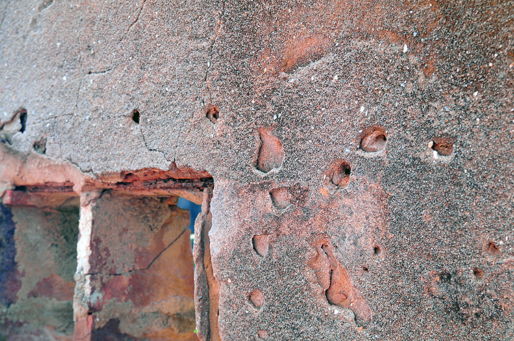 ▼ 牆上坑坑疤疤聽說都是彈孔。
