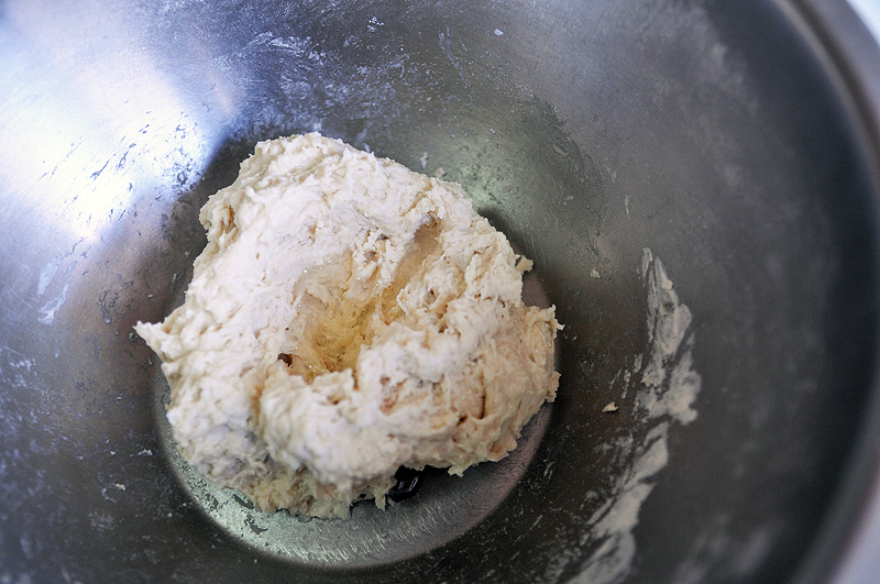 ▼ 揉到油分佈均勻後,蓋起來靜置一小時別理它,讓麵糰鬆弛(醒麵)。