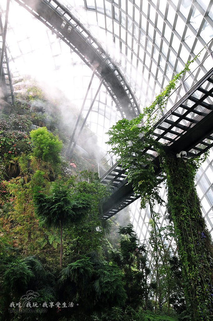 ▼ 和剛剛的 Flower Dome 相反,Cloud Forest 完全是個雨林,室內的溼度超高,連地都是溼的。